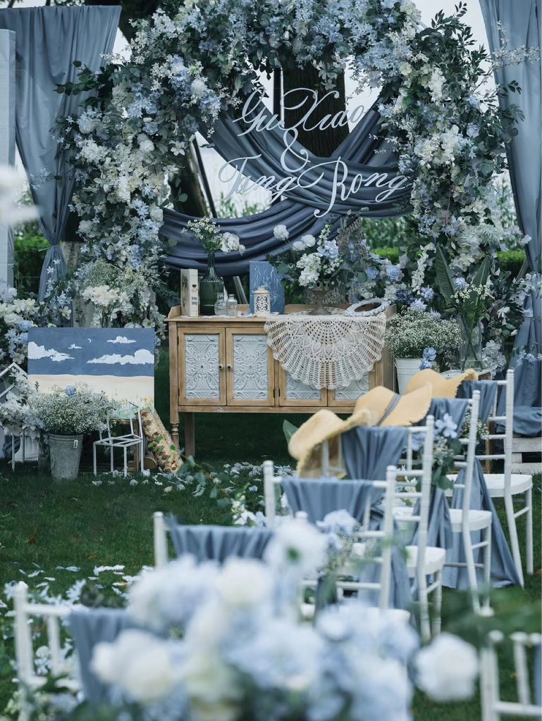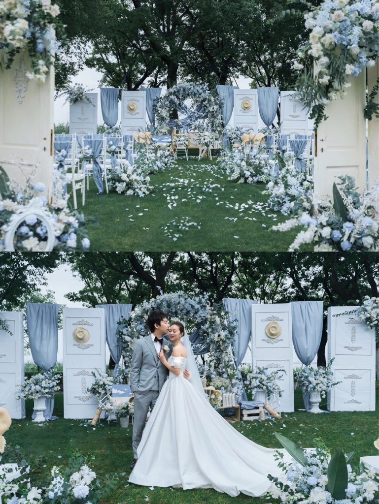雾霾蓝户外婚礼,邂逅清新雅致的浪漫