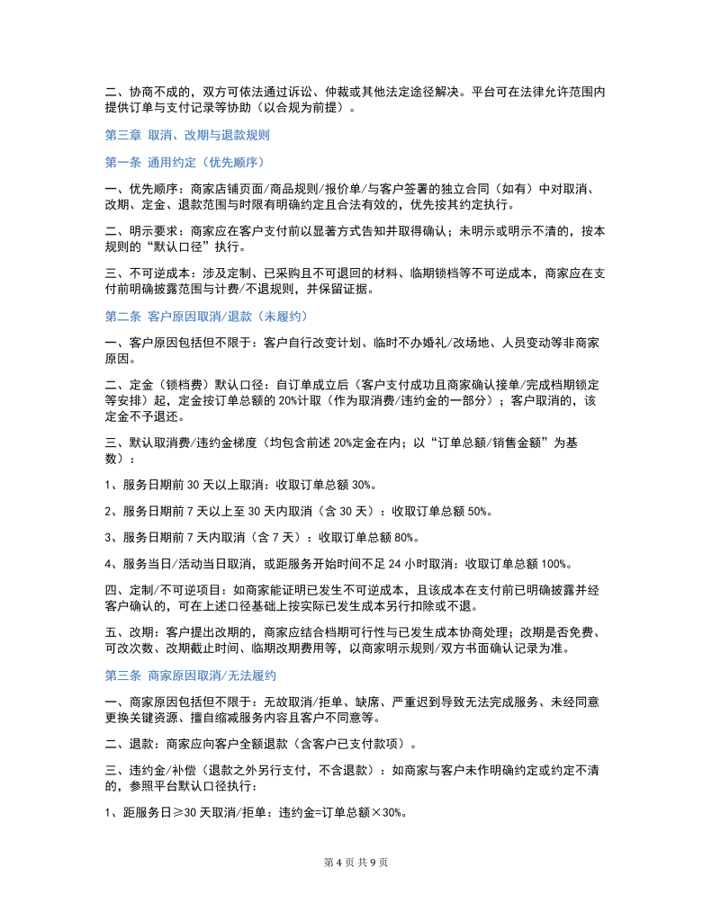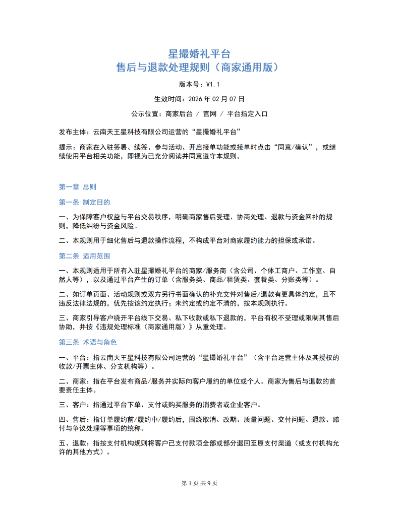 星撮婚礼平台 售后与退款处理规则