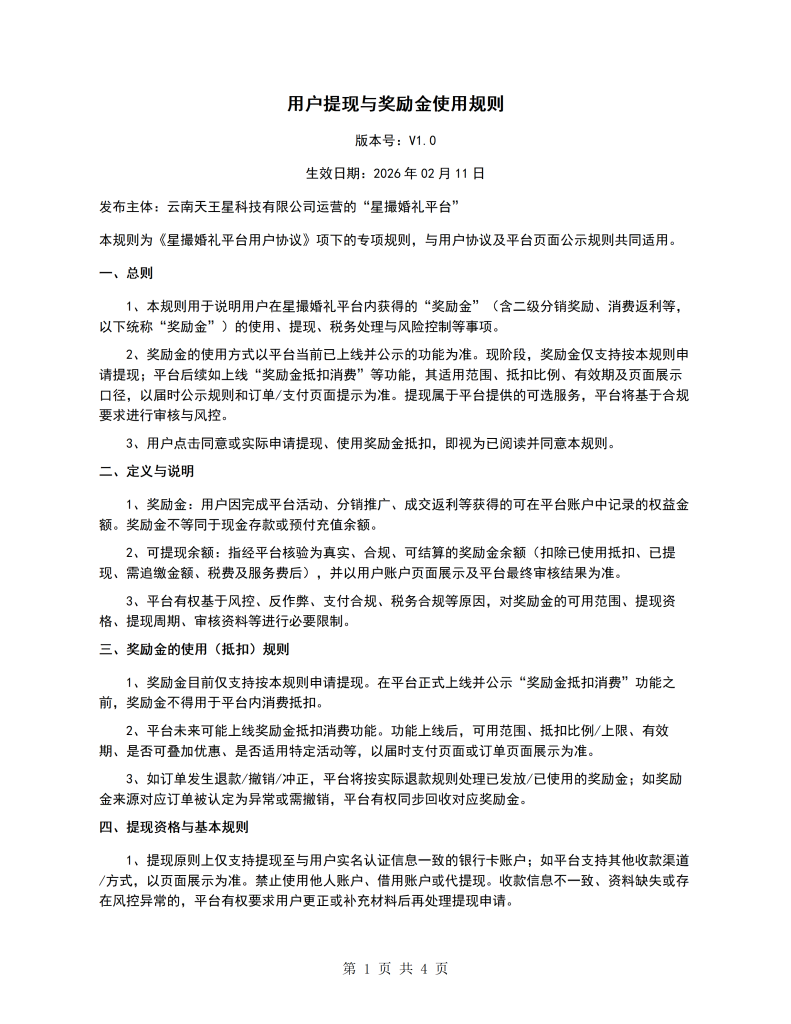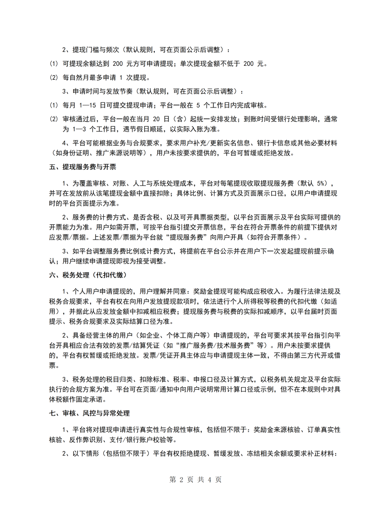 用户提现与奖励金使用规则