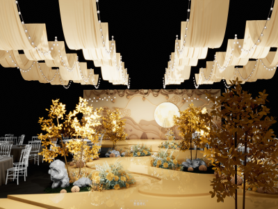 鎏金月下的诗意婚礼 当奶白与鎏…