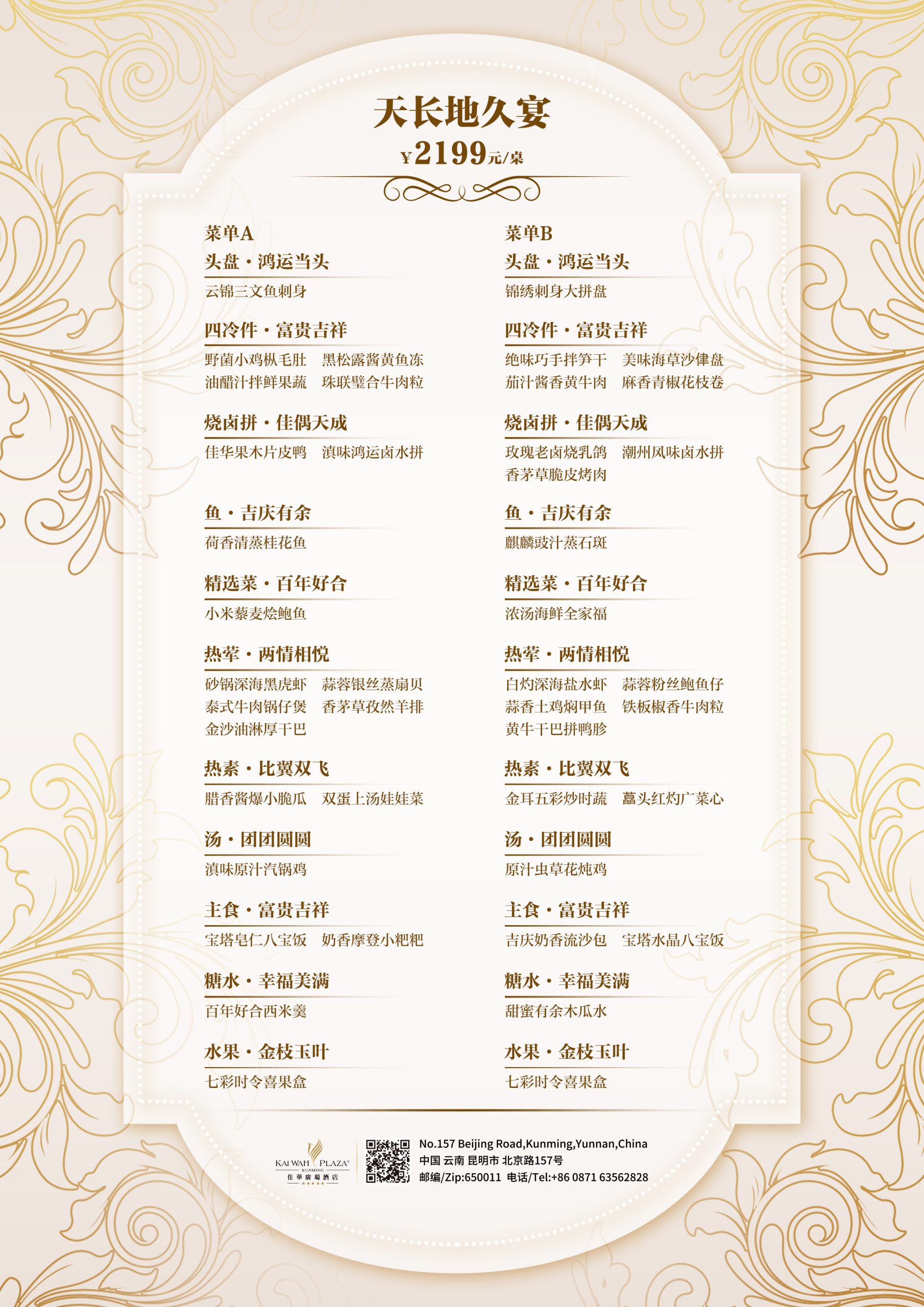 其他说明 列表菜单有菜单A/菜单B(二选一),菜品AB套餐可申请调换,餐品数量含果盘1份 |