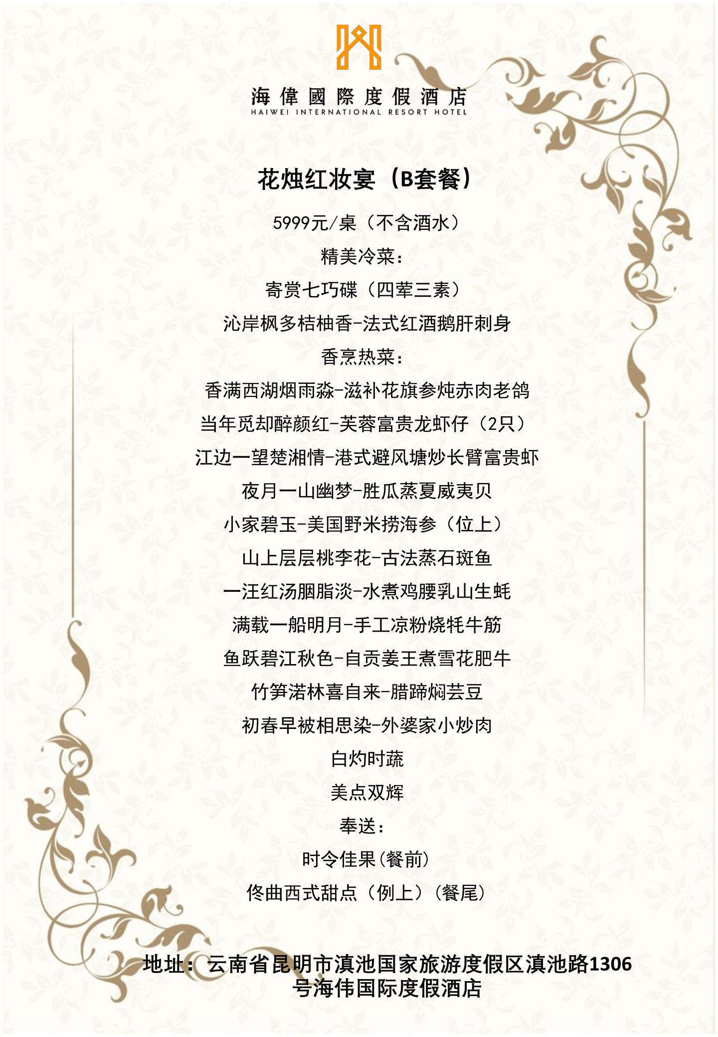 最低餐标 2999.00元/桌 |