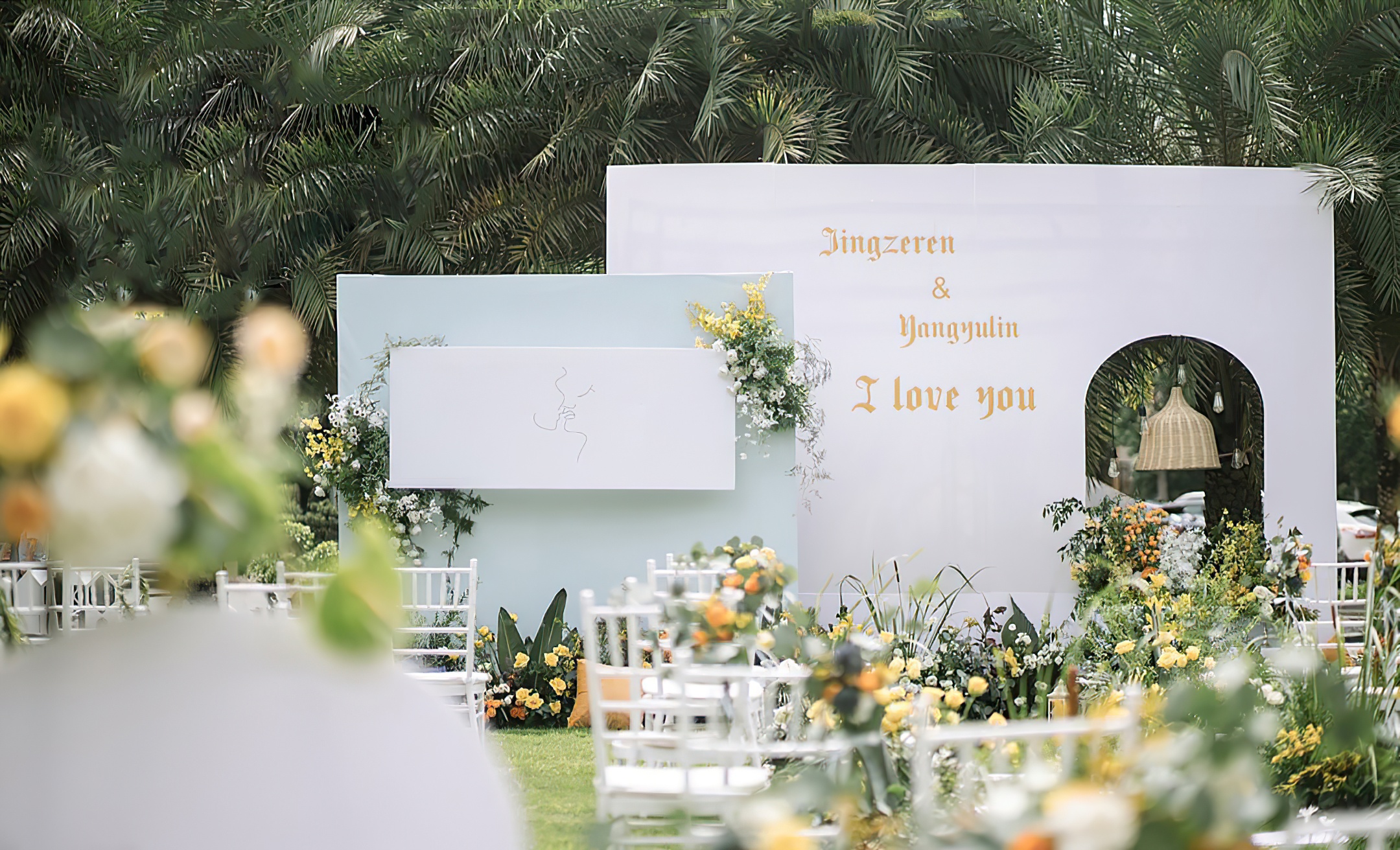 当新人手牵手站在仪式区,新娘的白纱与暖黄花艺相映成趣,新郎的西装在自然背景下更显挺拔。在这片充满生机的花境中,他们许下的誓言,将被自然的风、暖黄的花、翠绿的叶永远铭记。每一朵花的绽放,每一片叶的摇曳,都是对他们爱情的美好祝福,将这场森系户外婚礼的清新与浪漫,凝成永恒的记忆,在时光的长河中,不断散发着爱的芬芳。这不仅是一场婚礼,更是一次自然与爱、清新与浪漫的完美交融,为新人的婚姻旅程,写下了最清新动人的开篇。