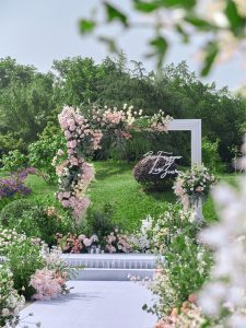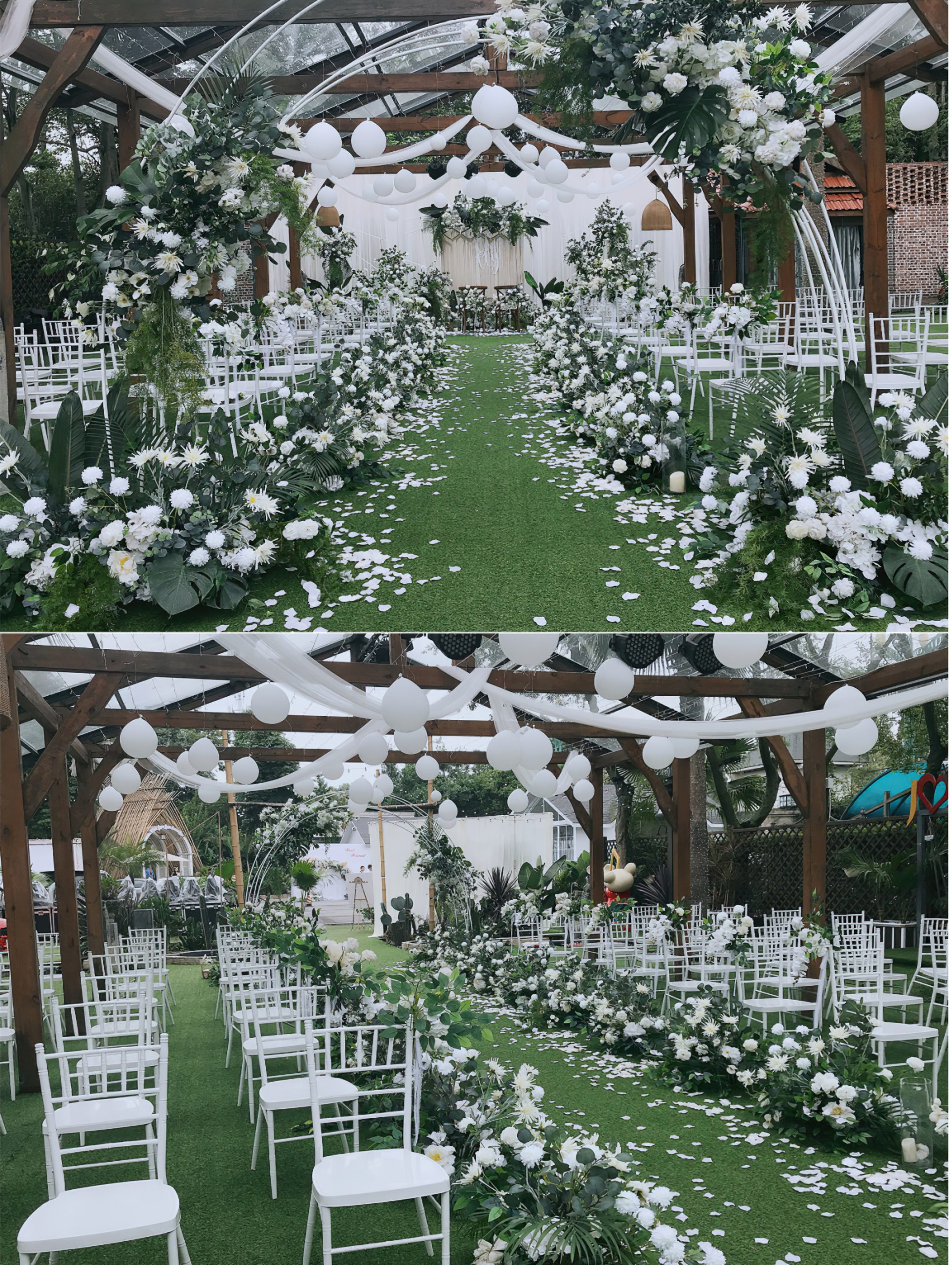 安装简便且风格百搭,可根据场地灵活调整布置细节。当新人在白绿花境中交换誓言,每一片叶、每一朵花都是爱情的自然见证,为婚典注入清新与浪漫的双重质感,让你的户外婚礼成为宾客眼中的 “森系婚典范本”,为婚姻的开端写下最清新的自然注脚。