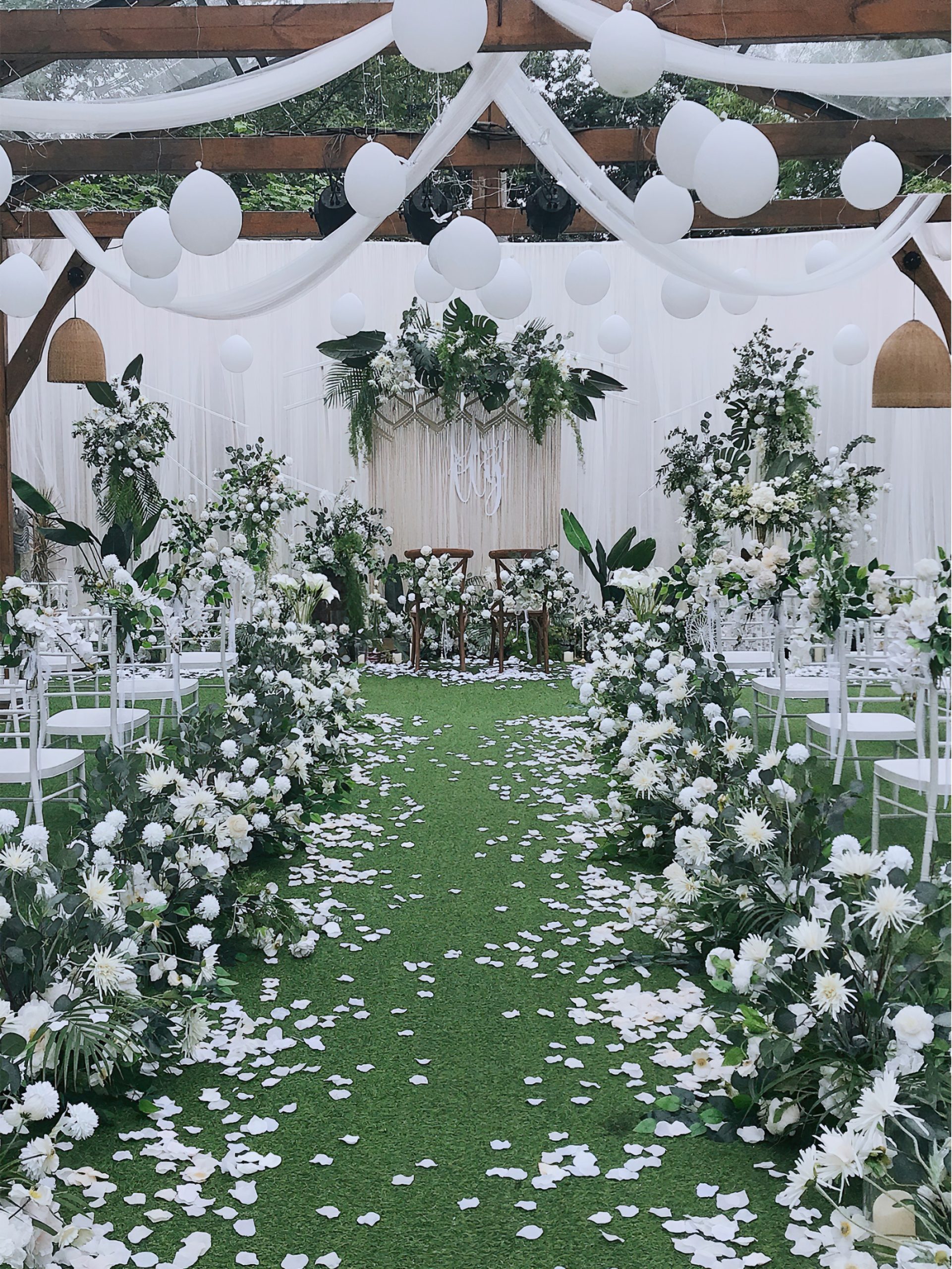 向往一场充满自然气息的户外婚礼?这款白绿森系婚礼布置套装为你实现清新婚典梦!