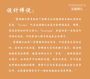 暖橘色的纱幔如云朵般垂落,将婚礼现场晕染出温柔的光晕。鲜花簇拥的通道,像是铺开的金色小径,每一朵花、每一缕光,都透着自然的生机与浪漫。在这里,没有刻意的华丽,只有如阳光亲吻般的温暖质感,新人步入其中,仿佛踏入了一场为他们专属定制的,被阳光与爱意填满的绮丽梦境。