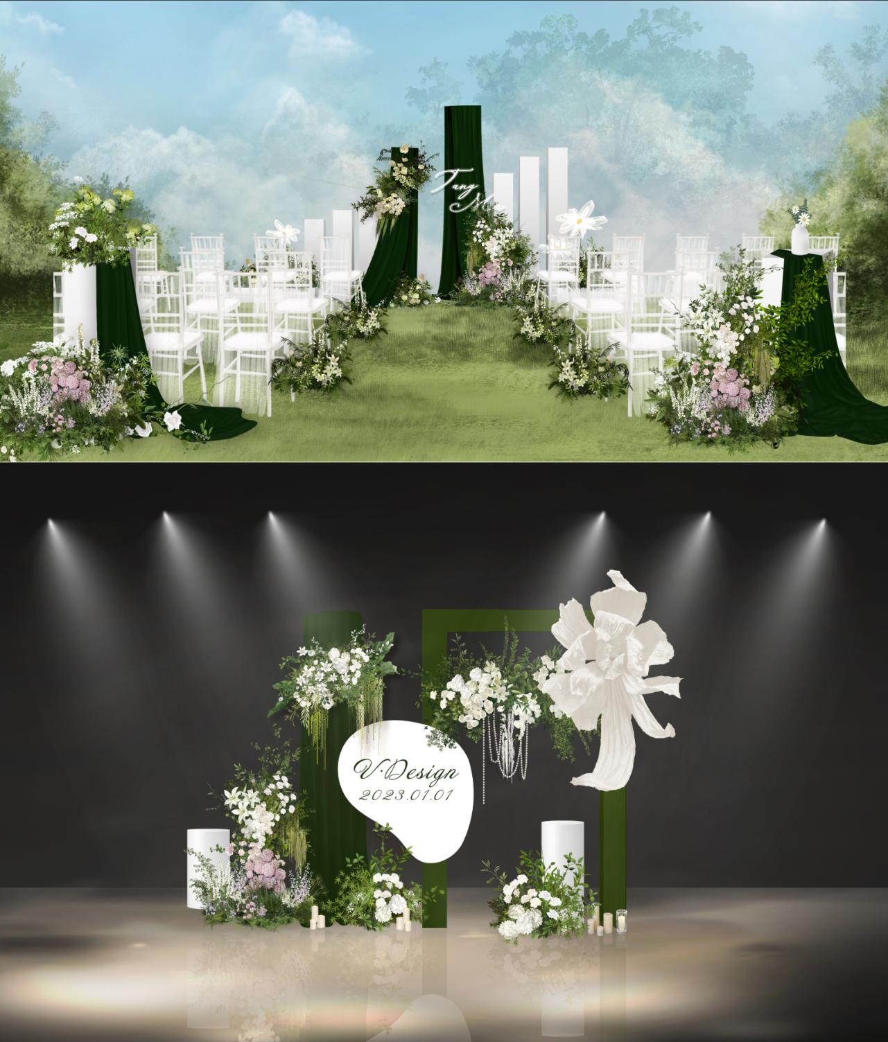 森系白绿婚礼,邂逅自然清新的浪漫 以白绿为主色调,打造出森系...